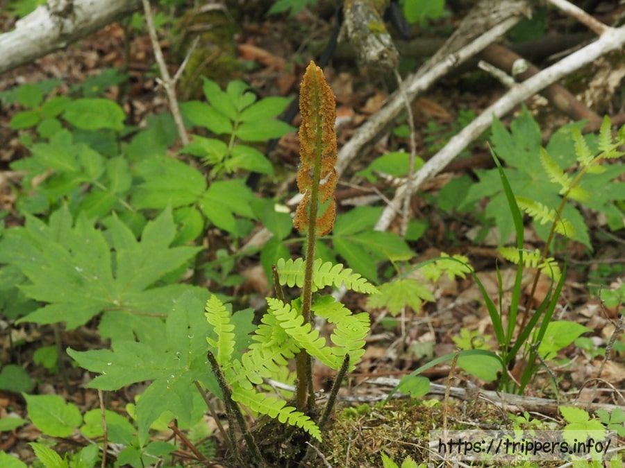 茶色い部分は花でも、唐揚げでも天ぷらでもありません。花を咲かせないシダ植物特有の、胞子がある胞子葉です。私にとっては、唐揚げにしか見えません。