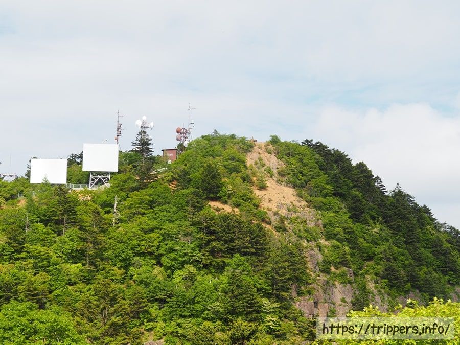 開運山の山頂には幾つもの電波塔や電波反射板が設置されており、なかでもNHKのロゴは目立ってました。