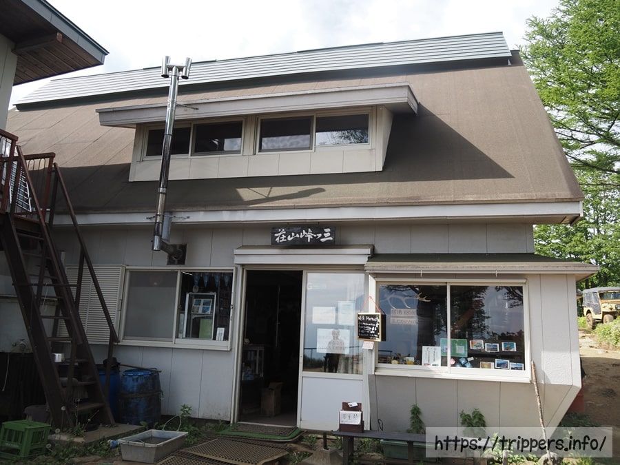 三ッ峠山荘に到着しました。今日は、日本高山植物保護協会(JAFPA)に参加しているボランティアの人々がアツモリソウの保護活動をしており、チラシ入りのポストカードを頂きました。