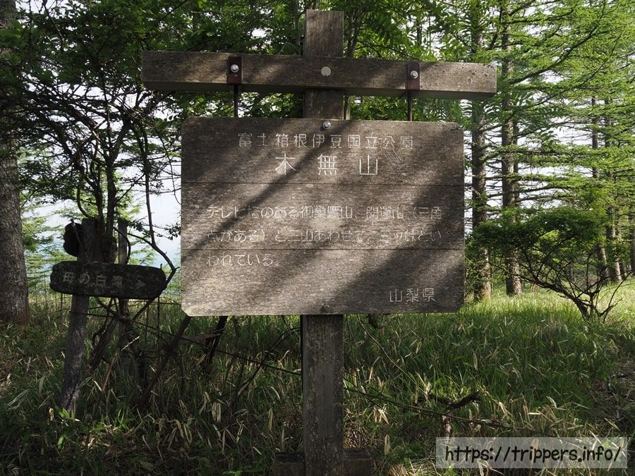 標高1,732mある木無山に到着しました。ここが3つめの頂上で、3つの頂きを持つ三ッ峠山をピークハントするなら全て立ち寄りたいものです。3つの頂きが山名の由来かどうかは、色んな説があるようです。