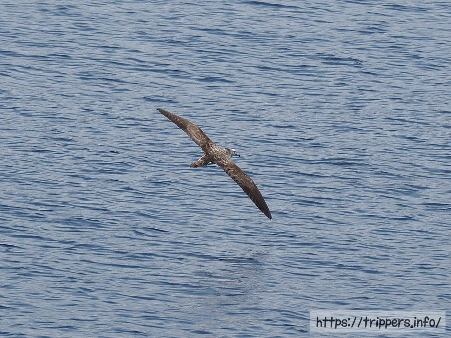 出航してから、船外へ出てみると、オオミズナギドリが獲物を狙って飛んでいました。他に水中から1匹だけトビウオが飛んでいました。
