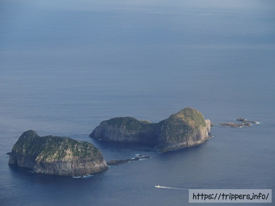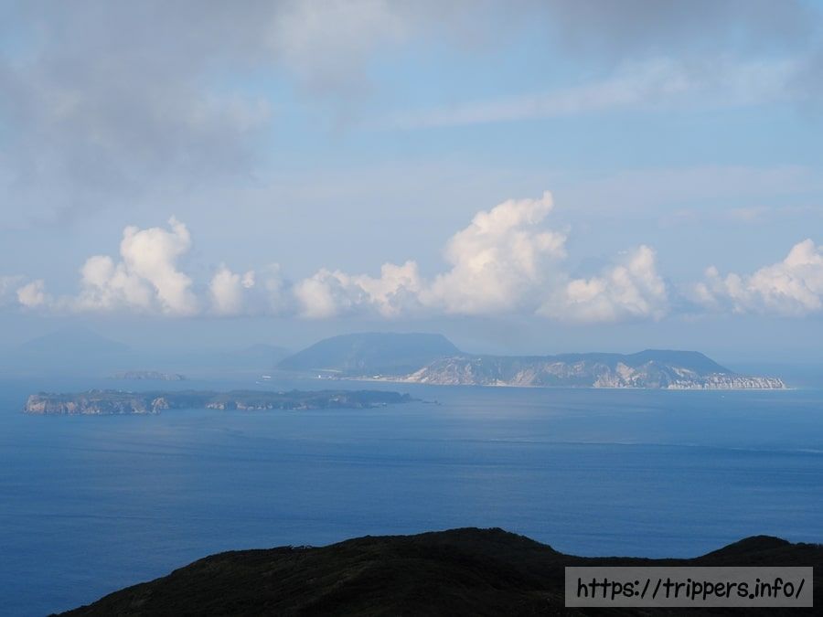 天空の丘の近くからは、左手前に式根島、右手に新島の絶景が見渡せます。