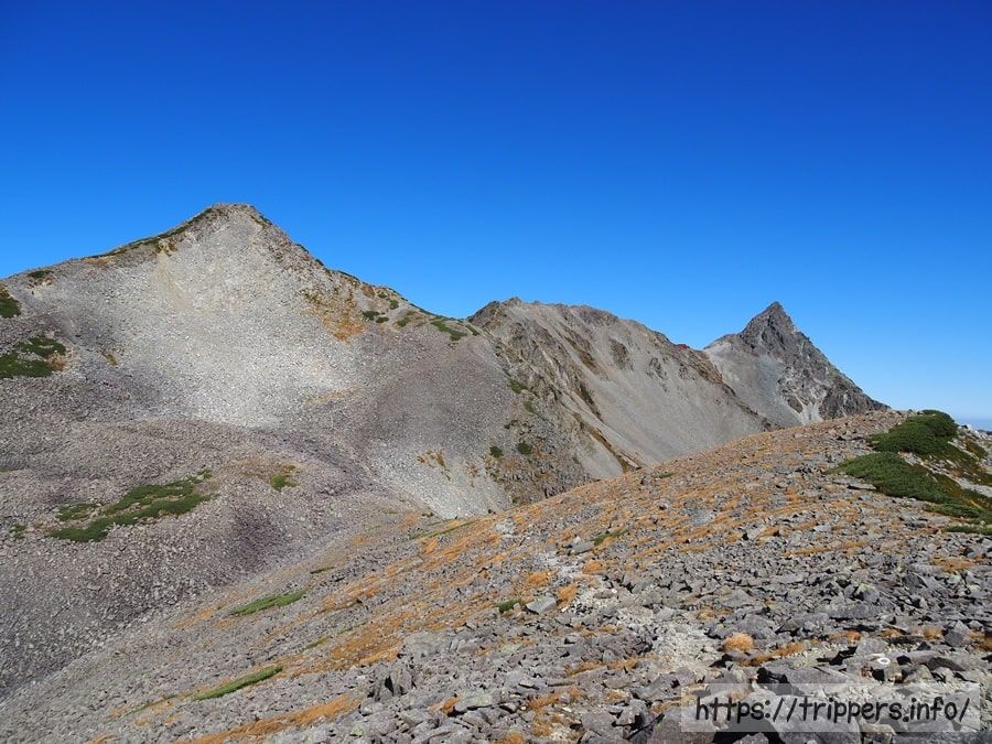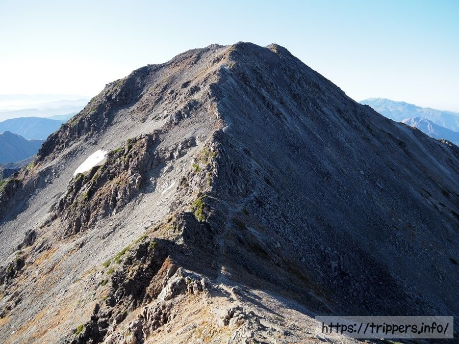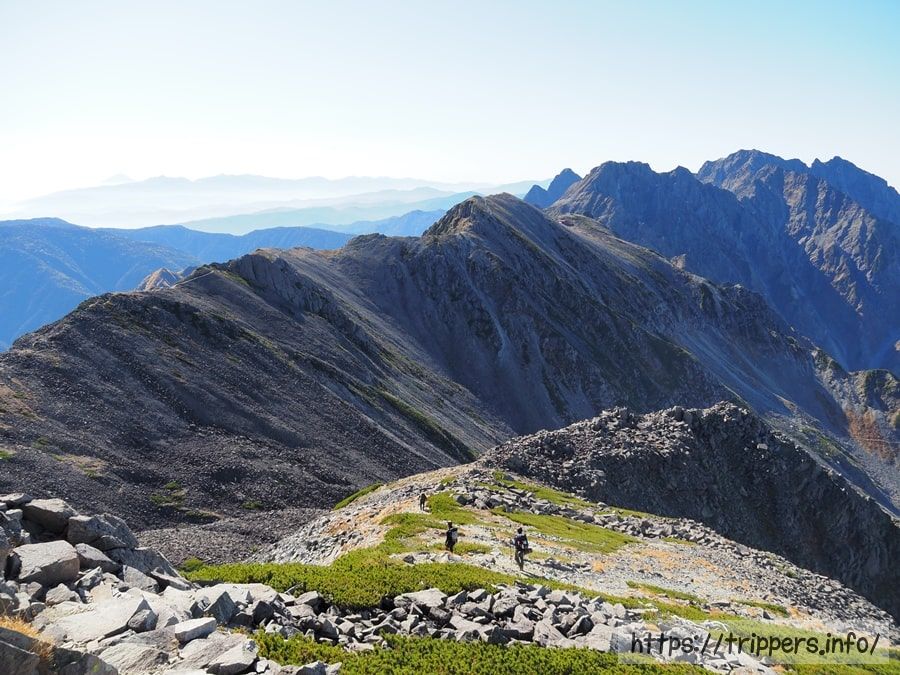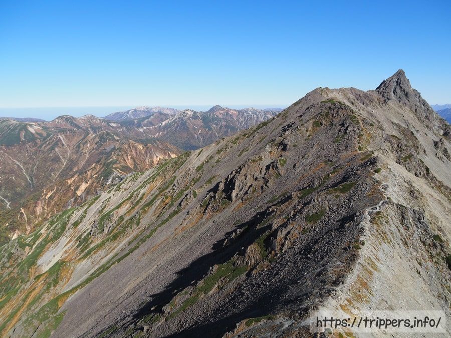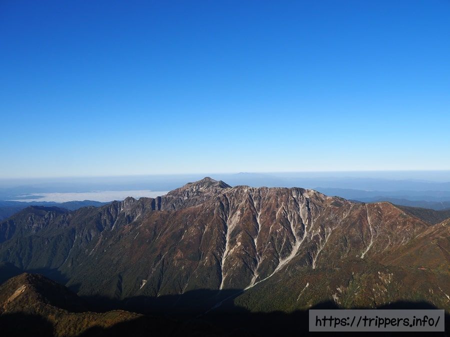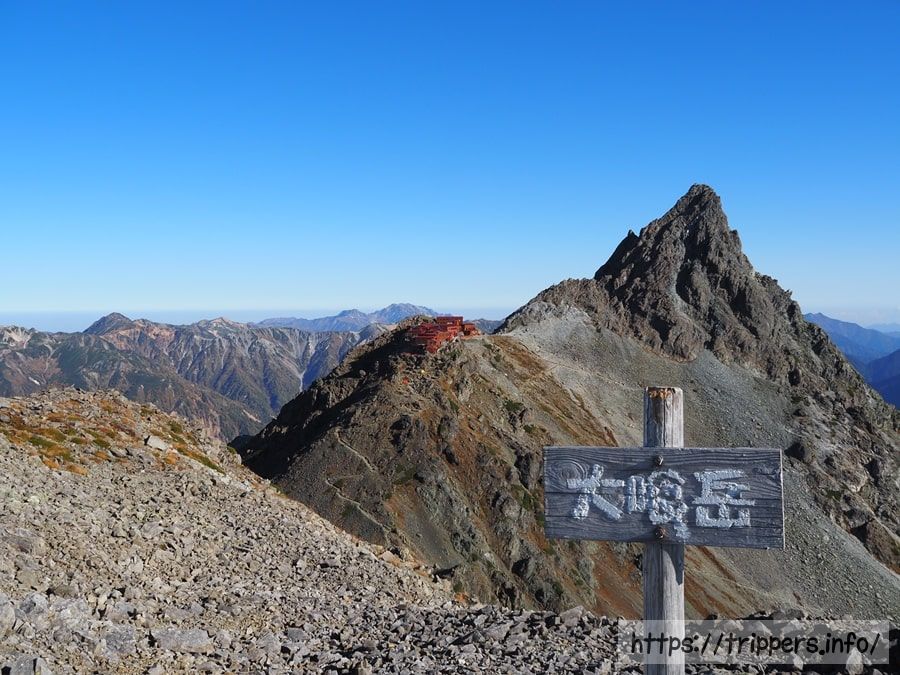 日本で10番目に高い山ですが、ここら辺は槍ヶ岳に付随する山として認識されているので、日本百名山等の選定対象には入りません。大喰岳の山頂に立たないで通過してしまう登山者もいます。