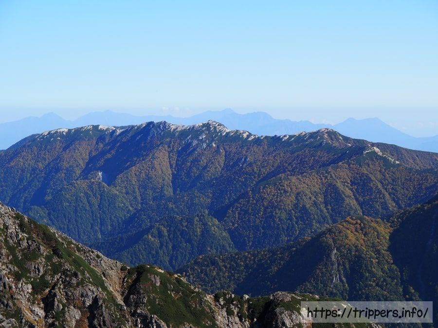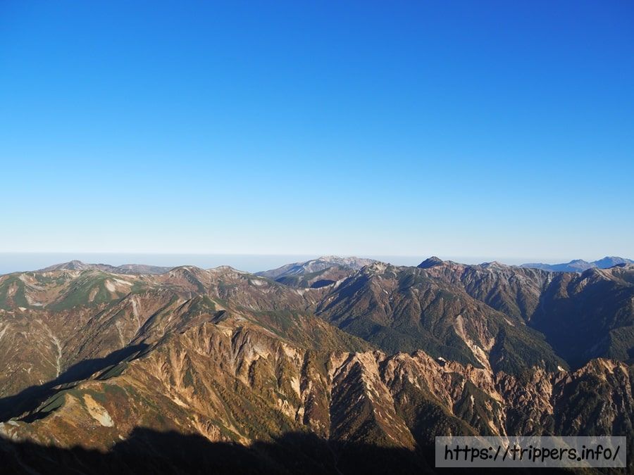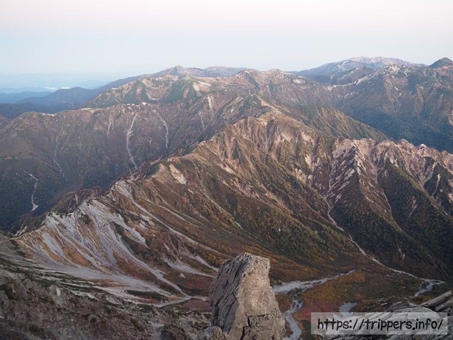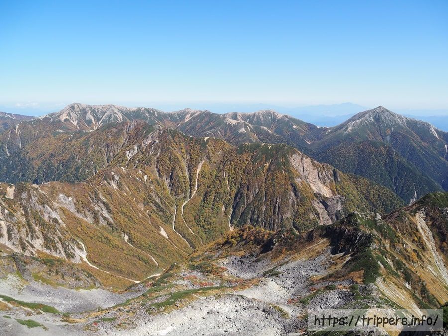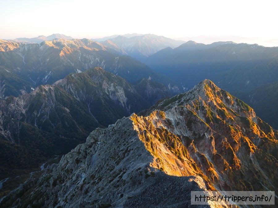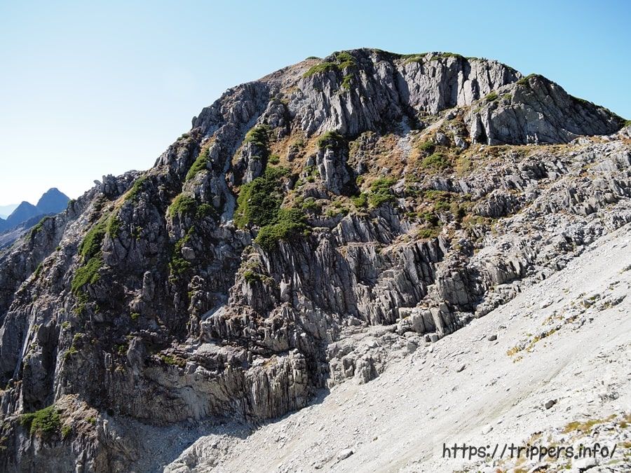 日本で10番目に高い山ですが、ここら辺は槍ヶ岳に付随する山として認識されているので、日本百名山等の選定対象には入りません。大喰岳の山頂に立たないで通過してしまう登山者もいます。