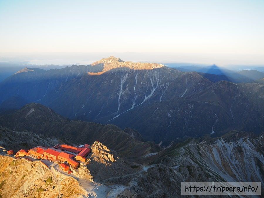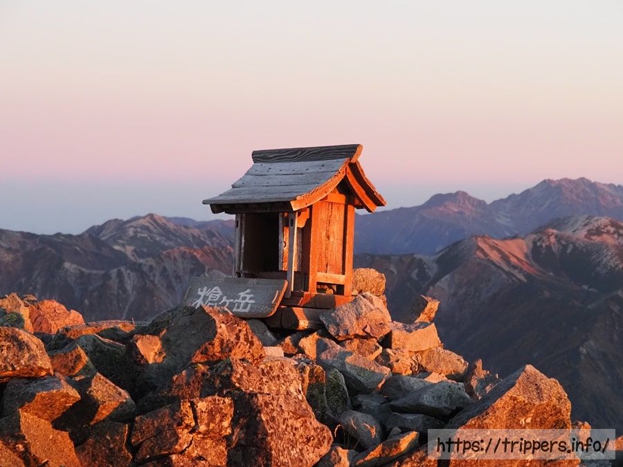 食事を食べ終えたら穂先へ登ります。山頂でご来光を見ようとする人は少なく、道も山頂もガラガラでした。穂先が渋滞しないように、山頂に長居しない空気が普段はあるのではと勝手に思っていたのですが、今日はその心配はなさそうです。