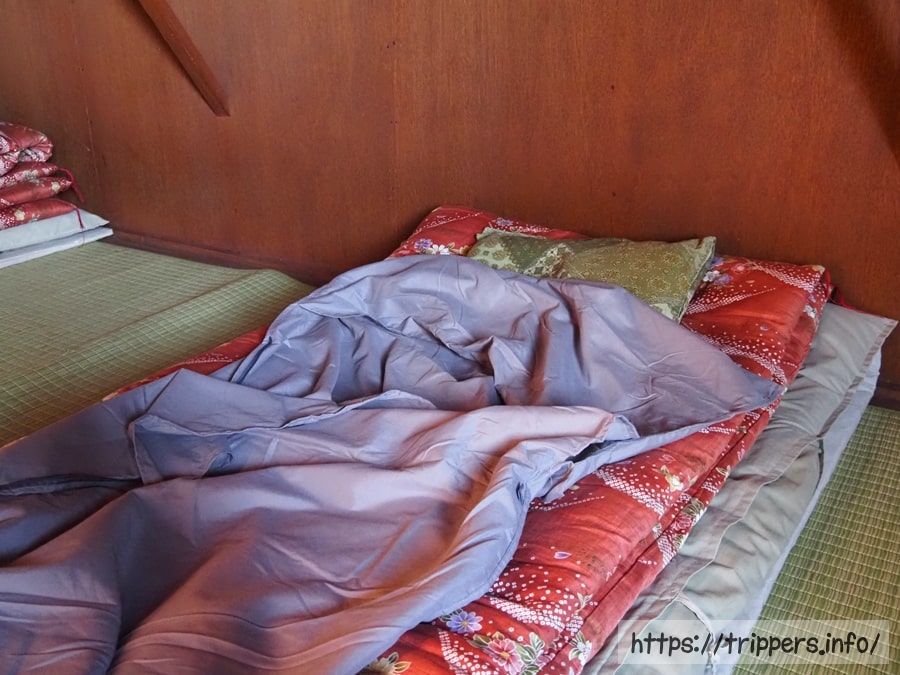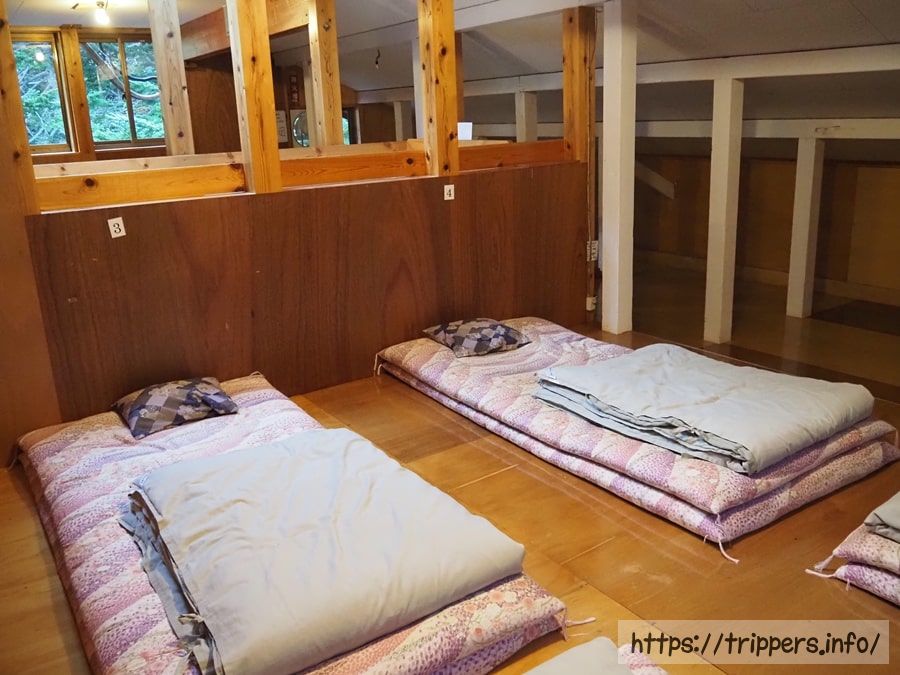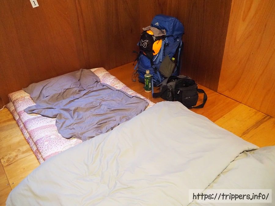 到着が遅かったので、屋根裏部屋に単独登山者3人で寝ることになりました。そのうちの1人が今夜宿泊した登山者の中で唯一かつ壮大ないびきの持ち主だったようで、私を含めた残された2人は、苦笑いしながら廊下の一番端っこに布団を移動することになります。