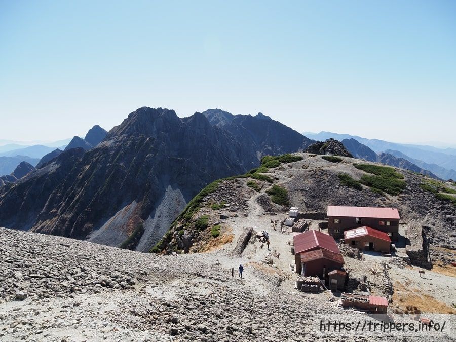 南岳小屋へお昼ご飯を食べに行きました。ここで食べないと、食べる機会は終着の槍沢ロッヂまでお預けになってしまいます。