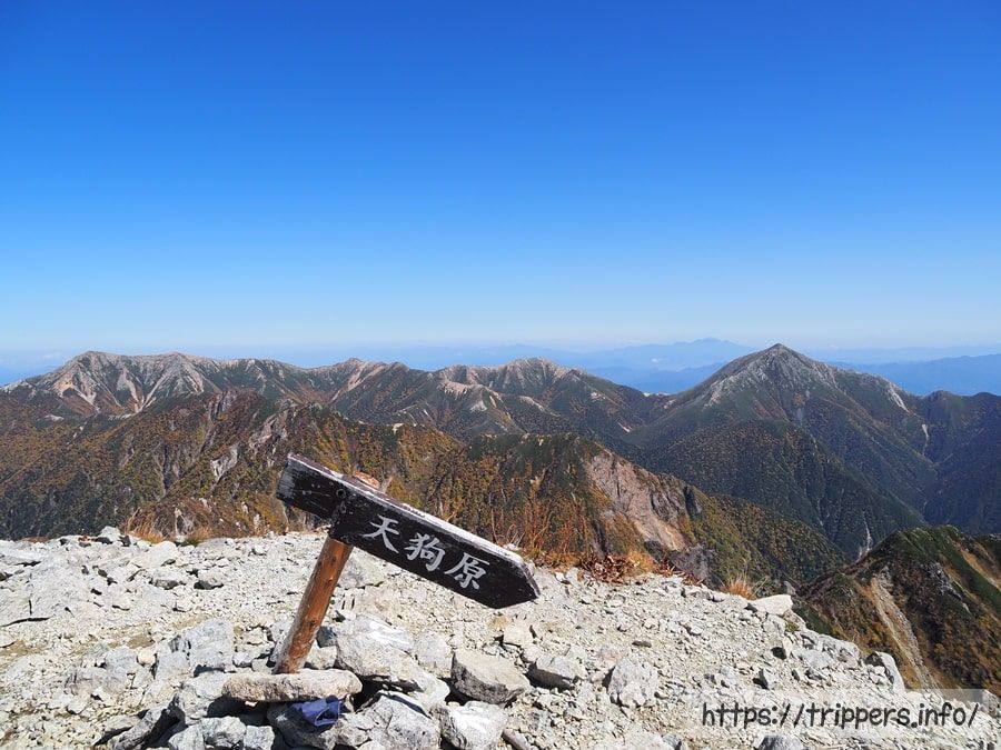 南岳小屋から南岳まで戻り、更に天狗原稜線分岐まで戻ります。