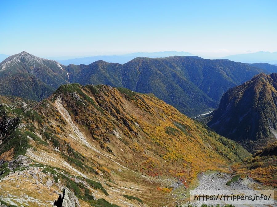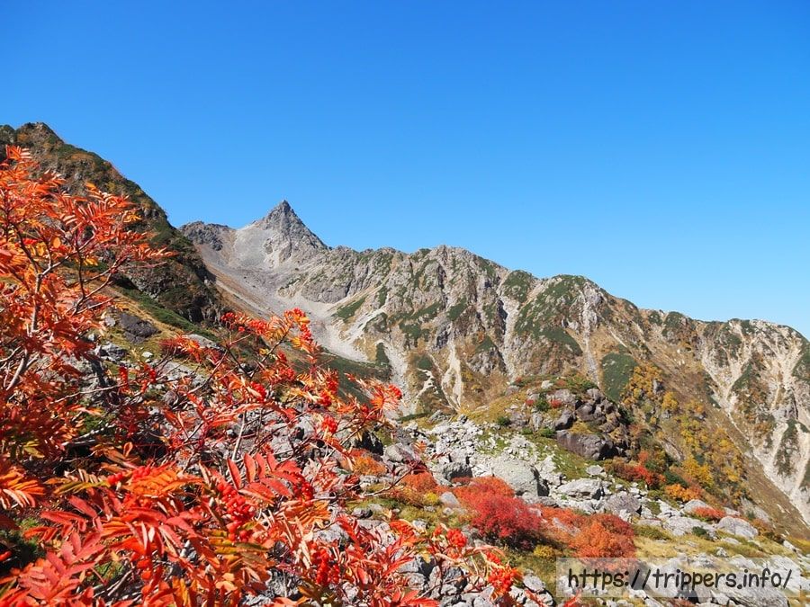 燕岳が綺麗に紅葉しています。あの山から、いつか槍ヶ岳に登ってみたいと思った登山者は多かったのではないでしょうか。私もそんな1人だったと思います。