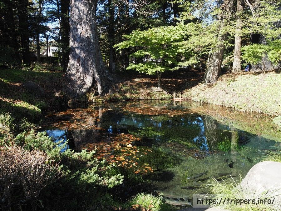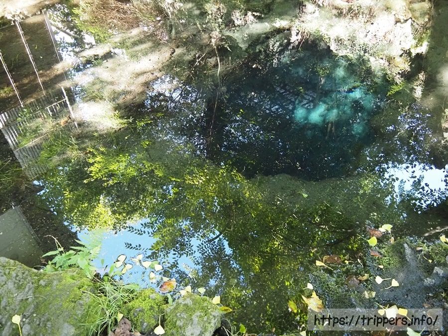 底抜池(三番霊場)は有料区間にありました。水の透明度はどの池も素晴らしく、池の底が青く輝いていました。魚も豊富です。
