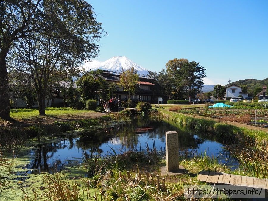 忍野八海の最寄りのバス停は忍野八海バス停ですが、バスの本数が限られているので、忍野入口バス停で下車して30分程歩いて忍野八海へ行きました。