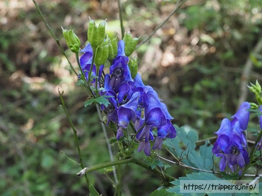忍野中学校を通過すると林道になります。発色が鮮やかなトリカブトが咲いていました。有毒であることはサスペンスドラマでよく知られていますが、有毒アルカロイドは加熱によって毒性が弱まります。そして漢方薬としての利用されます。