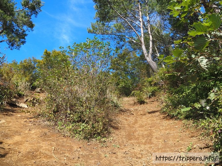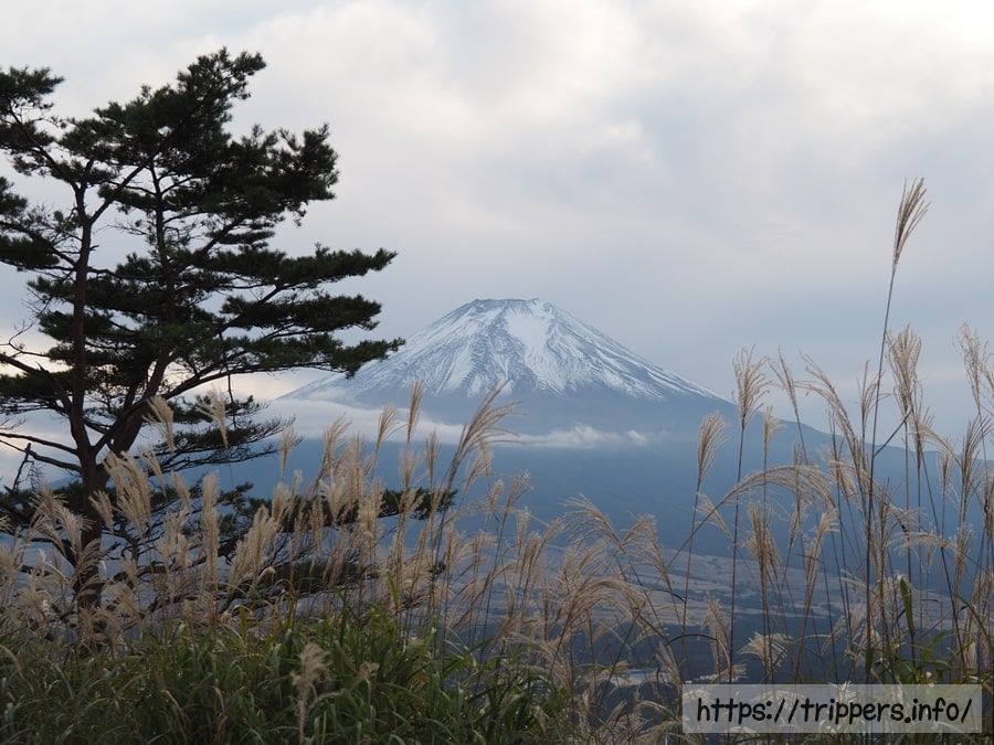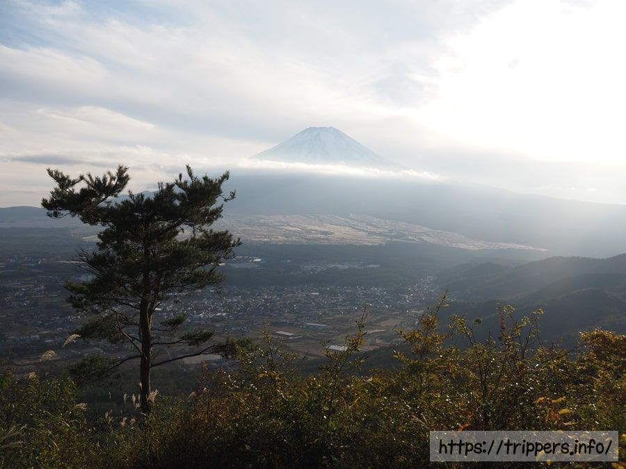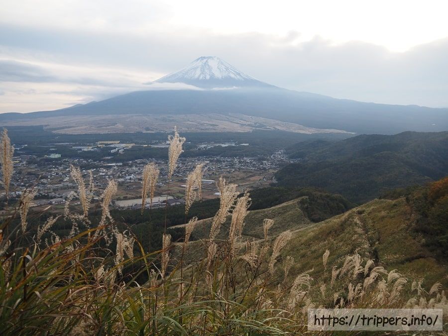 登山道は少し歩けば空を覆い隠す樹木はなくなり、富士山の裾野まで見えるようになります。ススキが覆う道はとても歩きやすく、幾つかの分岐点がありますが、どの道を進んでも山頂へたどり着けます。