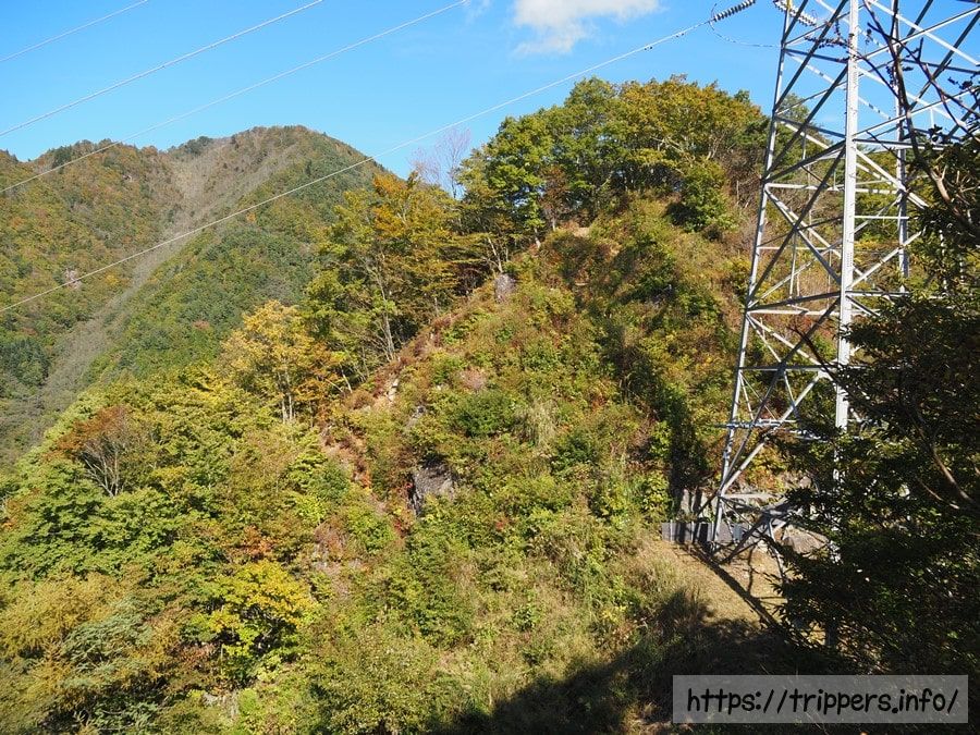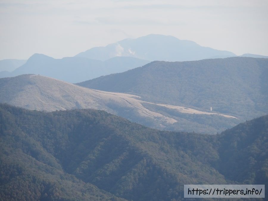 こちらは、丹沢山塊や箱根の方角です。木々が覆っていないススキの斜面が鉄砲木ノ頭で、その奥の右側の稜線が三国山、一番奥に箱根の大涌谷が見えていました。三国山へ続くヅナ峠道にはヤマシャクヤクが多く自生しています。