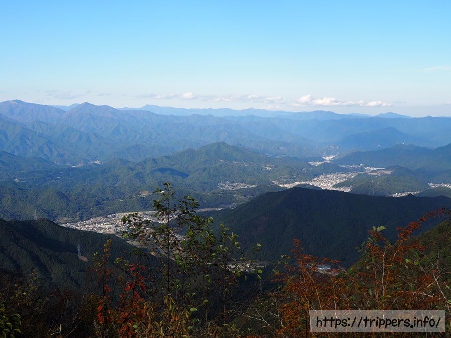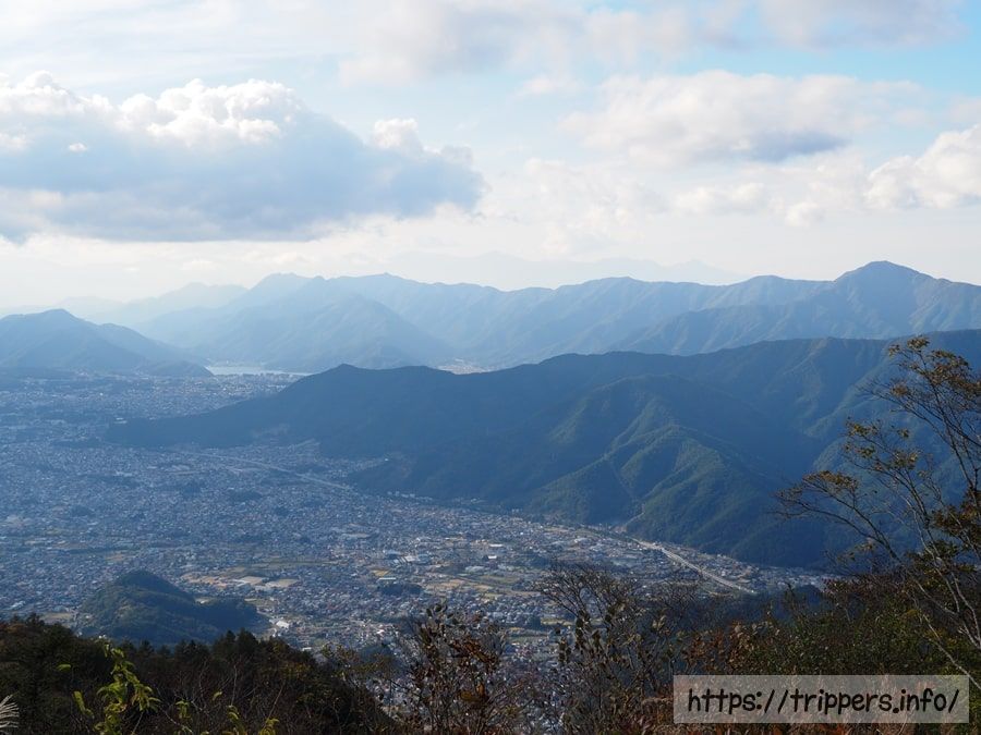 右奥の高い山が三ツ峠山で、左に見える湖が河口湖でしょうか。山座同定をするには、まだまだ山登りや地図読み経験が浅い新米です。