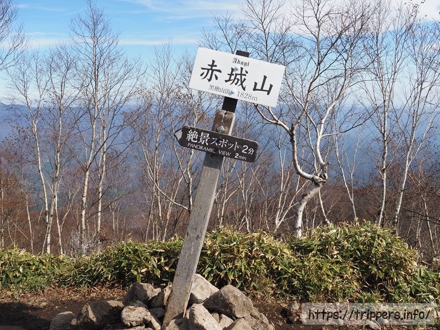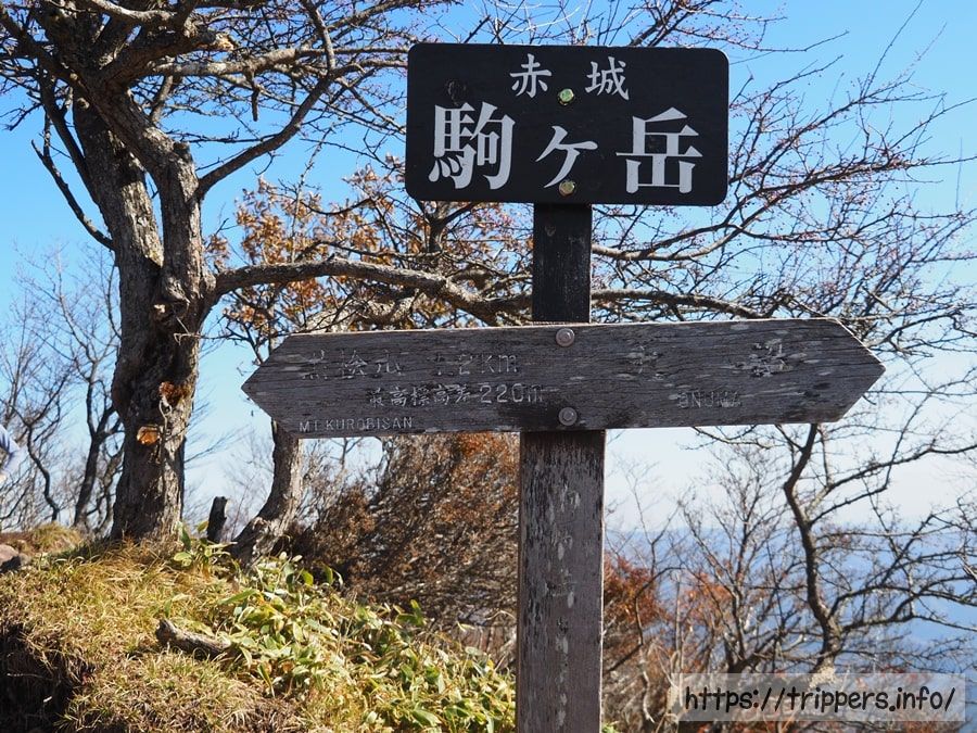 登り始めて1時間しないで標高1,685mある駒ヶ岳の山頂へ到着しました。赤城山が大昔に噴火したことで形成された外輪山の1つです。