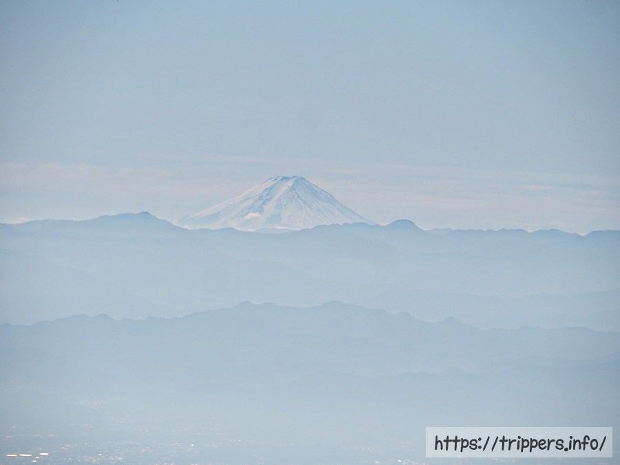 直線距離で約140km離れている富士山です。富士山をの下半分を隠しているのは雲取山を含む秩父の山塊です。