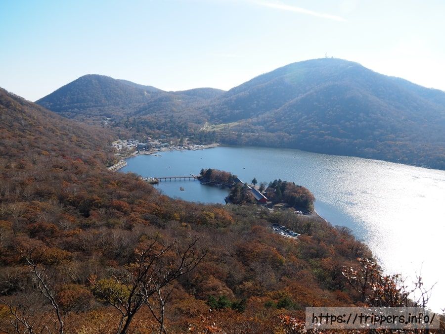 カルデラ湖の大沼と、そこにある赤城神社、色付いた外輪山の山肌と地形、そして遠くに見える上信越の山々、それぞれの要素が組み合わさって完成された1つの至極の景色は赤城山を印象付けるものでした。大福を食べて小休憩したら黒檜山を目指します。