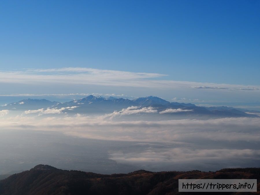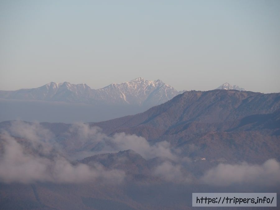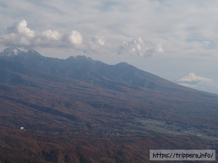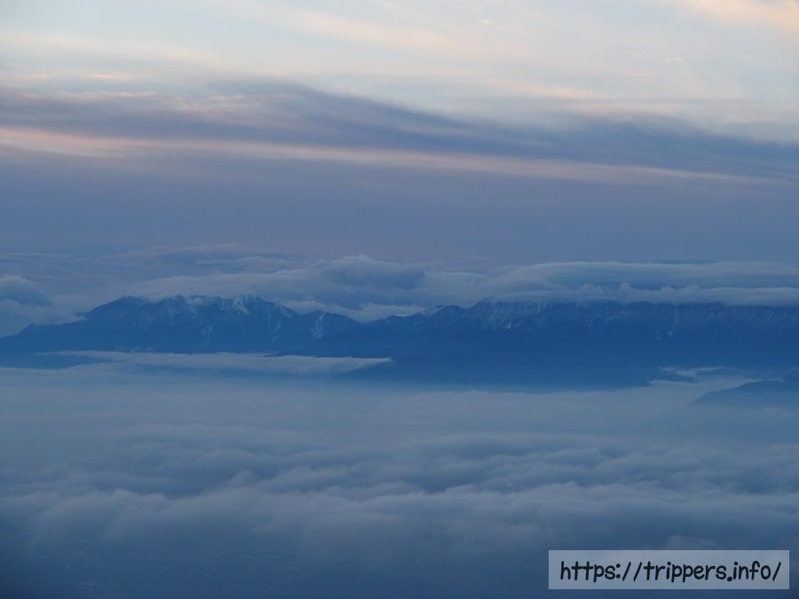 刻一刻と景色が変わっていきます。先程まで雲で隠れていた南アルプスの各山頂が顔を見せてくれました。八ヶ岳連峰の右に存在するはずの富士山はもう少しお預けのようでした。
