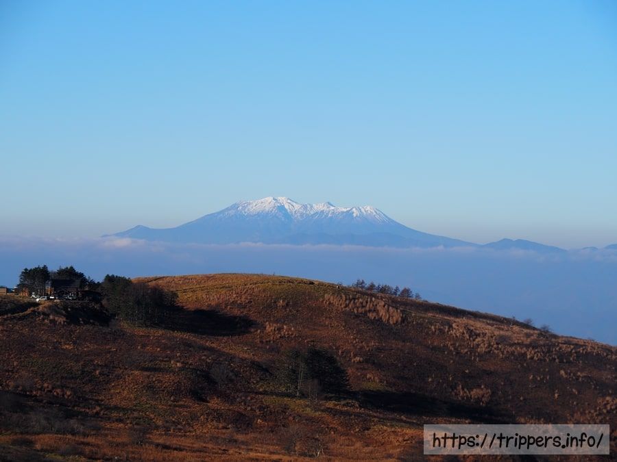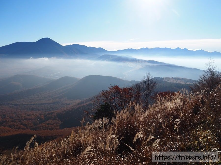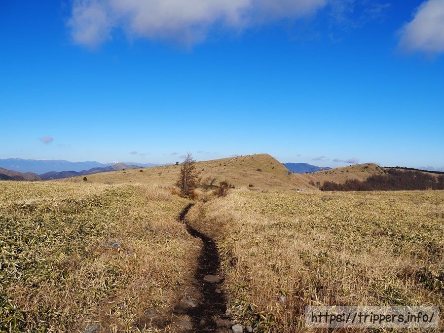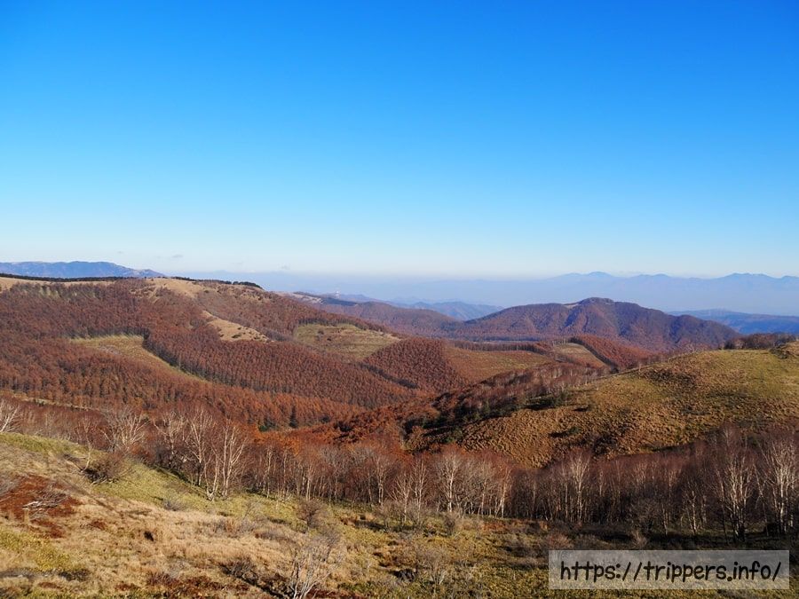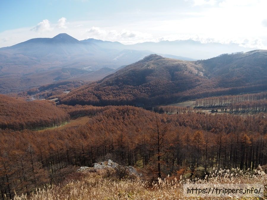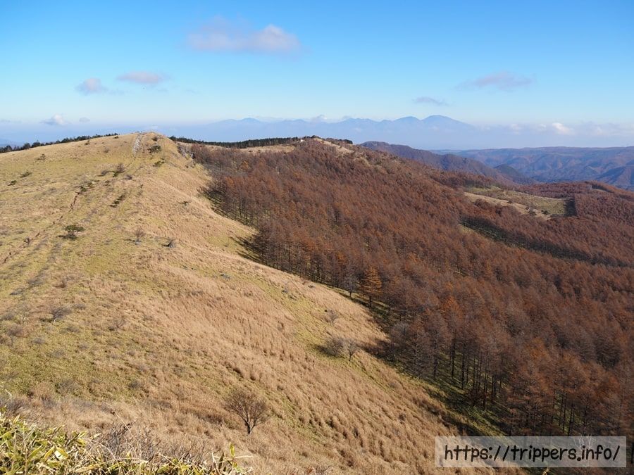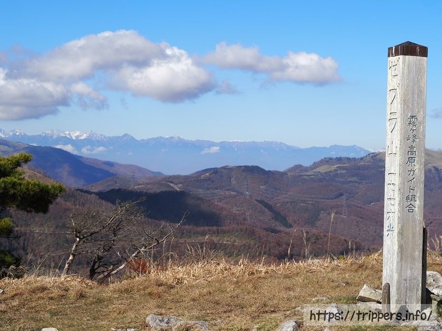 6つめは標高1,776mある男女倉山(ゼブラ山)です。展望は今までの山頂とはガラッと変貌します。変わった名前ですが、ゼブラ山と呼ばれる由来は車山肩にある山小屋「ころぼっくるひゅって」の創業者である手塚宗求によるものです。積雪した男女倉山の山肌がシマウマのように見えたからです。