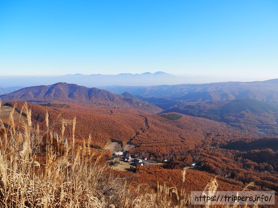 八ヶ岳も見渡せます。ススキの穂が太陽光で輝き、秋の澄み渡った空気がとても美味しかったです。