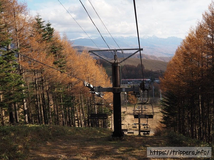 蓼科山と白樺湖を見ながらリフトで下山します。歩いても帰りのバスに間に合ったのですが、往復でリフトを買った方がお値段が安いのと、リフトを使用せずに下山してもバスに間に合うかは、今朝の時点では分かりませんでした。
