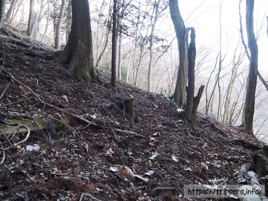 最初はとても歩きやすかったのですが、次第に傾斜がきつくなってきました。木々が多かったため、なんとか木から木へ移動しながら標高を上げていきます。なんとか難所は無事に終えましたが、撮影する余裕はなかったです。