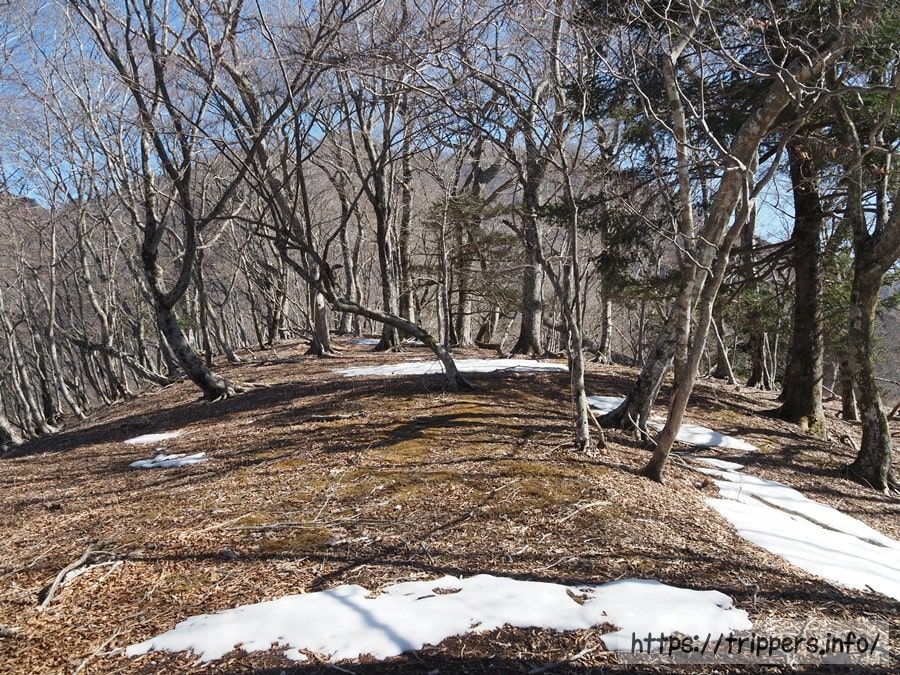尾根に到着したら、暫くは歩きやすい稜線歩きになります。その前に朝食にしました。丹沢を歩き始めて数年が経過しましたが、未だにカモシカに出逢えていません。人がいない場所を歩けば出逢えるのではと、以前から思っていました。今日こそ、遭遇したいです。