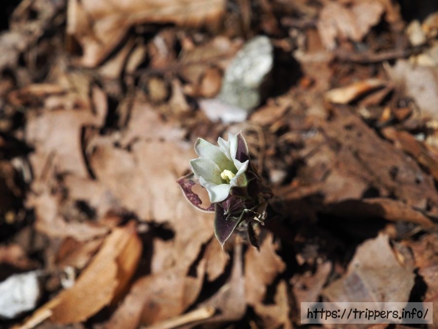 まだ開花していないと思っていたシロバナフデリンドウの花が開いていました。小さすぎて、マメリンドウという名前の方が似合っているくらいでした。大量の落ち葉の中で、よく視界に飛び込んできたと思います。