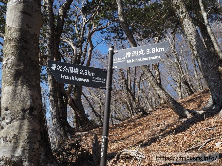 石棚山稜は他の登山道と比べて、定期的な整備がされていないように思います。崩落個所は修復されておらず、以前よりザレていたり、去年よりは難易度が上がっています。檜洞丸を目指すなら、往路も復路も西丹沢ビジターセンターからツツジ新道を通行するのが安全で良いと感じました。