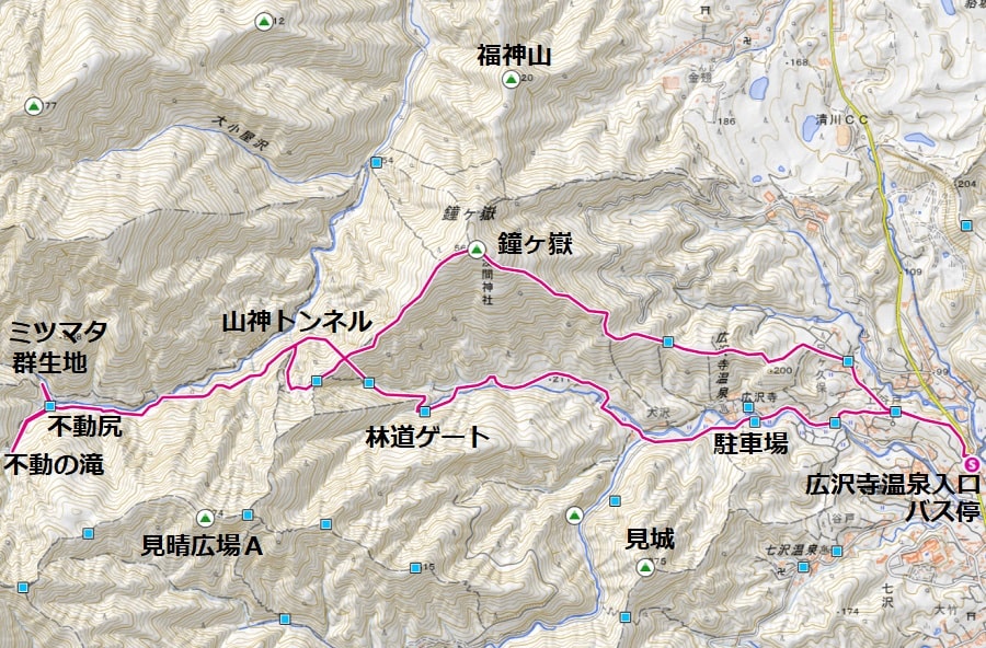 今回の道は不動尻のミツマタを見るだけなら、危険な箇所はありません。しかし不動の滝へ足を延ばす場合は、少し難易度が上がります。実際に、頭から流血しながら滝から他の人に支えられて下山する人がいました。