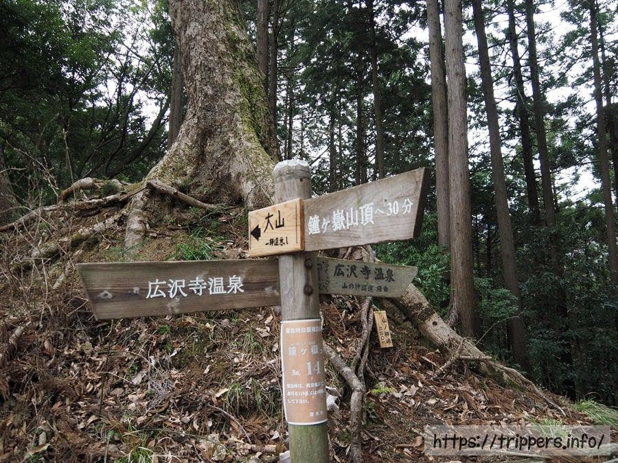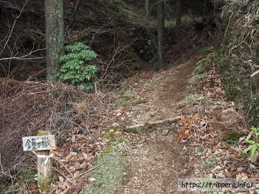 山神トンネルを通らずに、鐘ヶ嶽への登山道を進みます。トンネルの先にも山頂への道がありますが、どちらも山ノ神峠へ続いています。