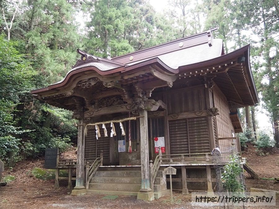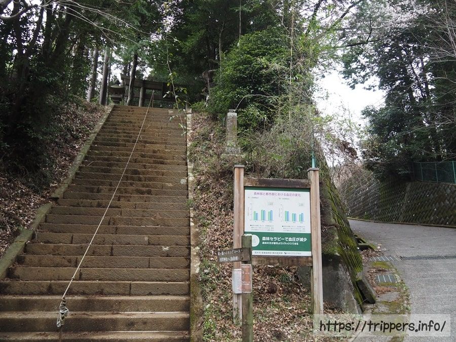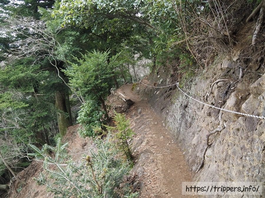標高561mある鐘ヶ嶽の山頂に到着しました。展望はなく、ベンチがあります。古くから信仰の山とされており、山頂の直下には浅間神社があります。参道を通って下山します。
