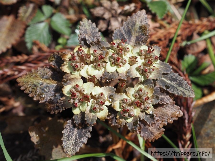 ヤマネコノメソウは既に終了し、種子ができていました。トライポフォビアの人には耐え難い姿です。