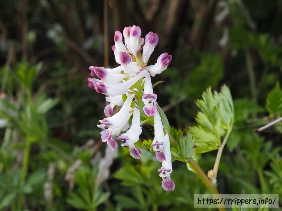 花色からシロバナヤブケマンのようです。ムラサキケマンと同じで葉っぱの切れ込みが多いです。