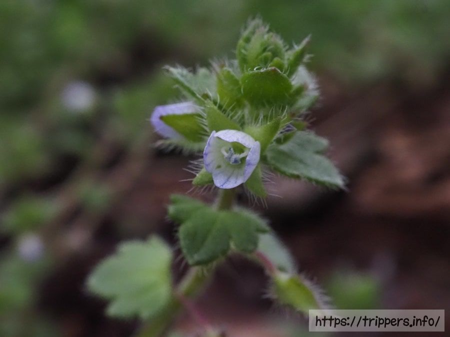 フラサバソウはヨーロッパ原産の外来種です。道端でよく見かけるオオイヌノフグリより小さくて、知らないと素通りしてしまう植物でした。