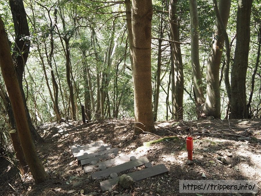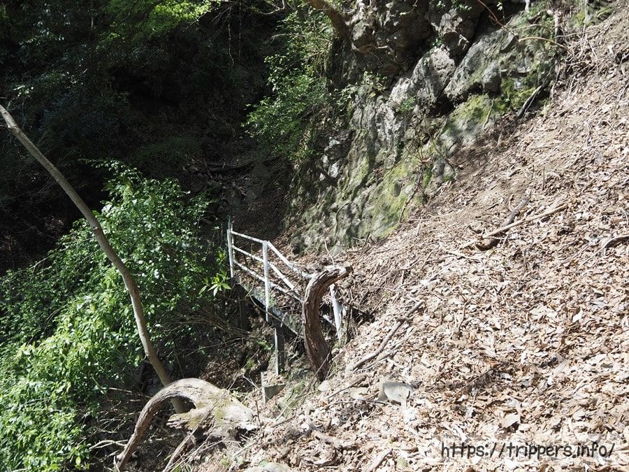階段があります。ちゃんと整備されていると思いきや、過去の産物です。更に下ると階段も崩落気味になっています。今回は四つん這いになって、両手足を使い、這うように急斜面を登ることはありませんでした。