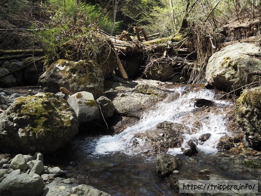 三の滝までは目と鼻の先まで到着しました。今日は水量が少ないため靴を水没させずに通行できます。倒木が多く、跨いだりくぐったりしました。ストックを使いませんでしたが、あった方が安全です。