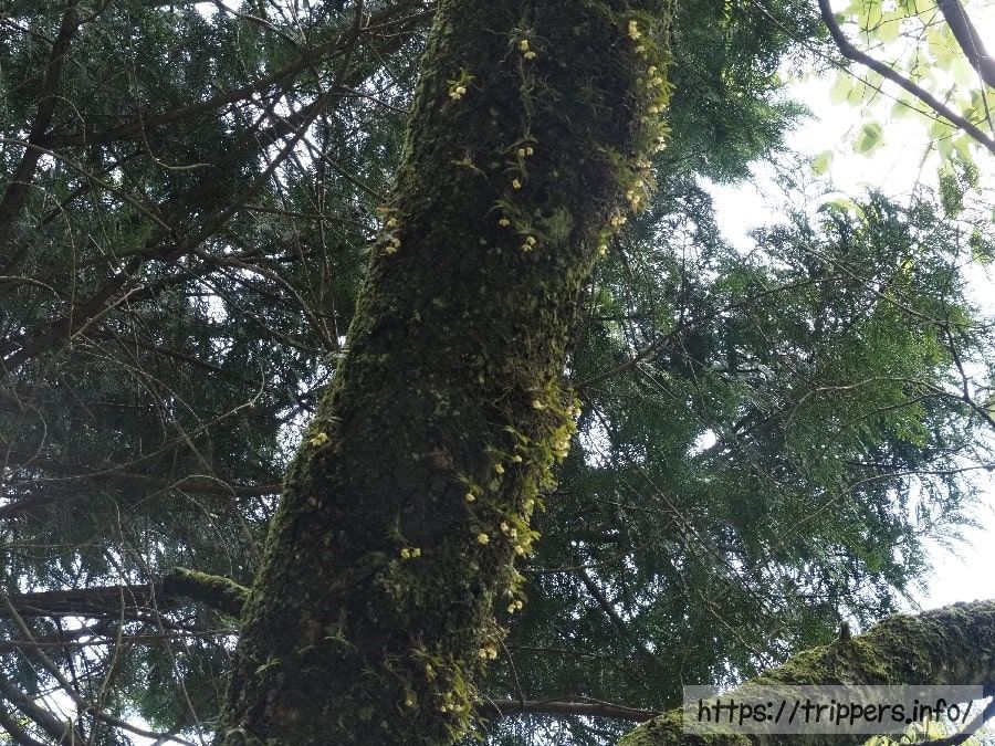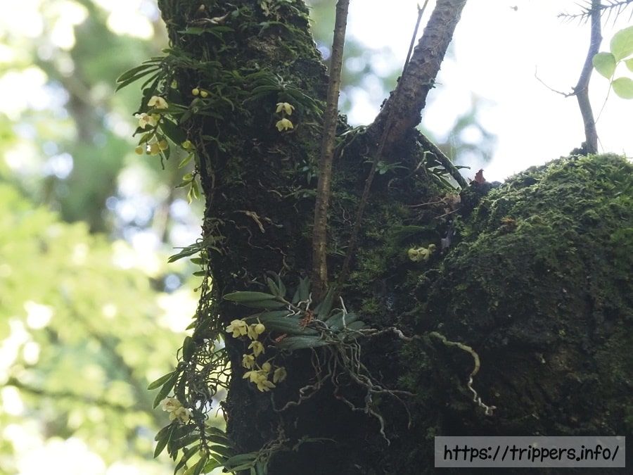 こちらはカヤランだらけの木です。人工的に着生させたわけではなく、ありのままの自然の結果だと思います。この時見つけたカヤランが付着した木は5本でした。頭上ばかり見てると、地面の植物を見逃してしまいます。他の人はどのように、地面や頭上の植物を探しているのか気になります。