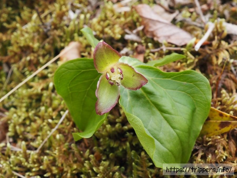 エンレイソウを発見です。ミヤマエンレイソウとの違いが分からずにいたのですが理解できました。花弁に見える外花被片が3枚あるのがエンレイソウ、そこに更に白い内花被片があるのがミヤマエンレイソウでした。