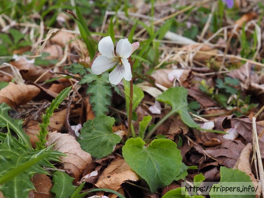 シロバナタチツボスミレです。自生ポイントが少ないのか、見逃しているのか、1ヶ所だけ自生を確認しました。