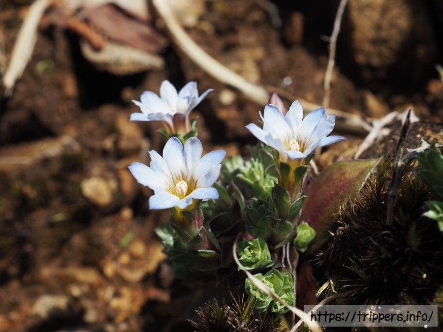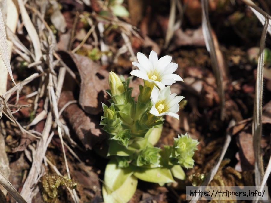こちらはコチョウショウジョウバカマです。以前はシロバナショウジョウバカマやツクシショウジョウバカマと呼ばれていた種で、現在はコチョウショウジョウバカマに統一されています。見頃に訪れることができませんでした。玄倉林道では、ヒカゲツツジと一緒に観れます。