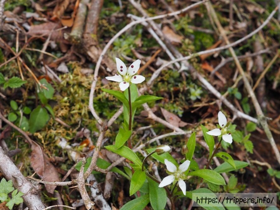 ワチガイソウは、ツルシロカネソウと同じ時期に同じような場所で見かけます。小さくてあまり目立ちません。