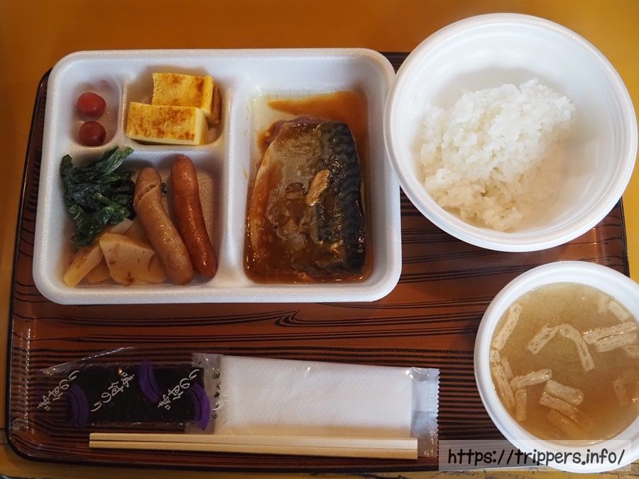 朝食はバイキングではありませんでした。油がのって柔らかいサバの味噌煮が、絶品でした。余計なゴミが出ないように骨なしです。ウインナーや卵焼きなど、眠たい朝でも食べやすい内容で、どれも美味しかったです。