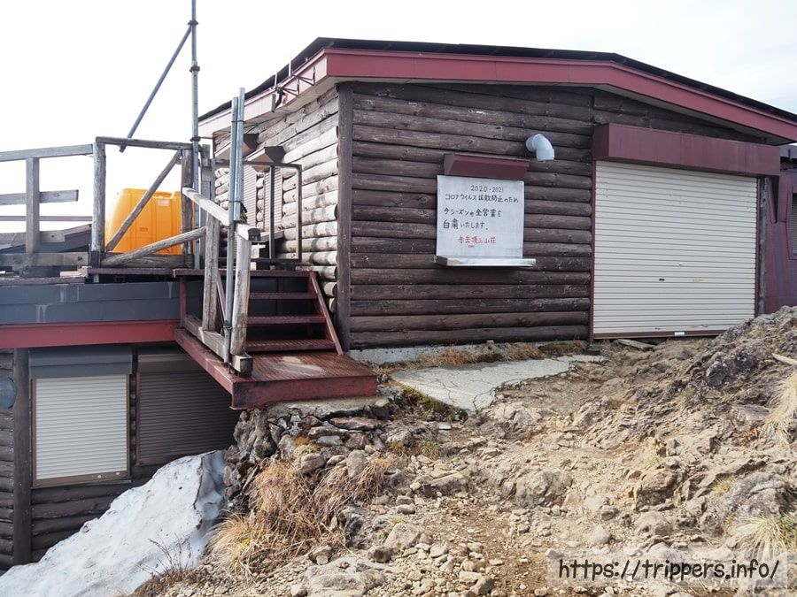 落石を発生させることなく、登り切りました。赤岳頂上山荘は7月から10月までの営業予定で、現在は休業しています。