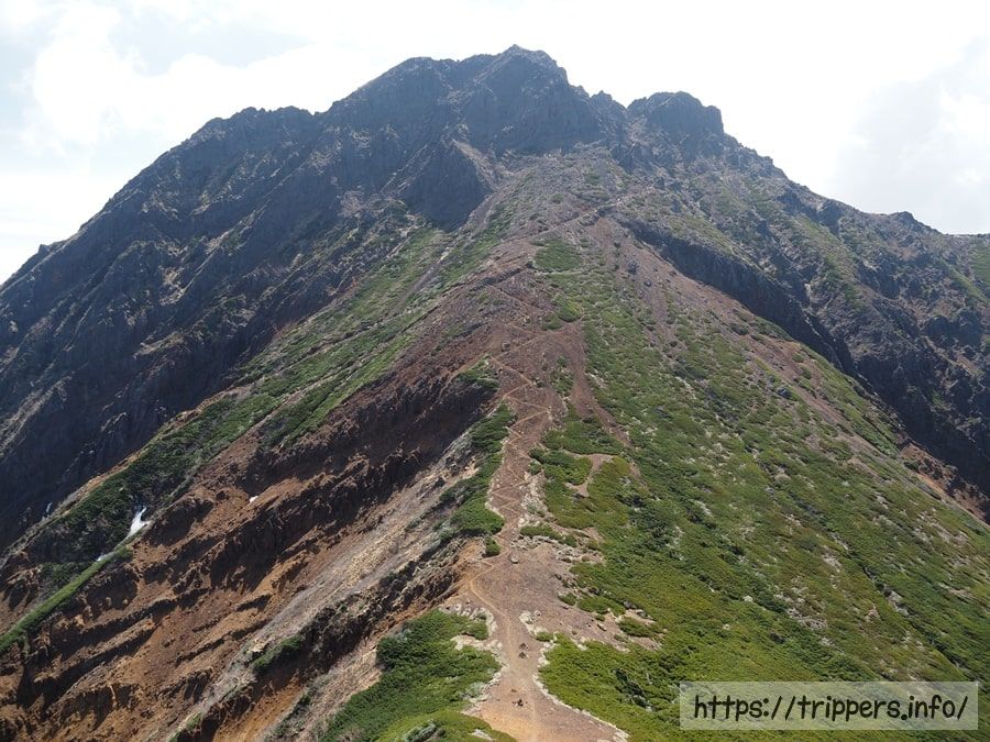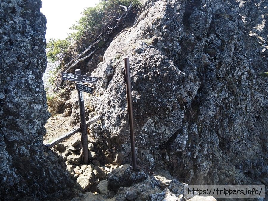赤岳山頂までは、四つん這いになりながら急騰を進みます。ヘルメット着用が推奨ですが、持参していません。八ヶ岳開山祭が開催されていたら、小さな石が幾つも転がりながらの渋滞だったかもしれません。けれど寂れたシャッター通りのように登山者は、ほぼほぼいませんでした。