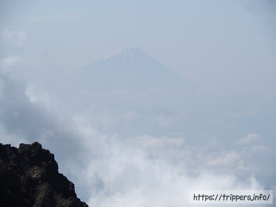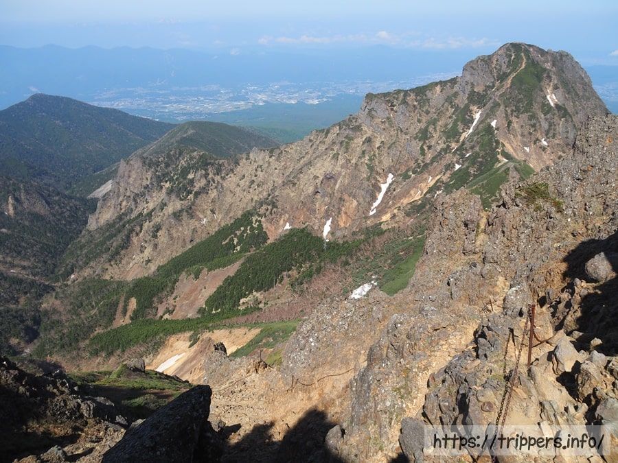 鎖が設置してあるので、見た目以上に歩きやすいです。高所の岩場は普段歩くことができないので、楽しくなってきます。よく歩いている丹沢山塊は花を求めに歩く分には魅力的なのですが、山歩きとしては、物足りないものがあります。深い山ですが、荒々しさがありません。