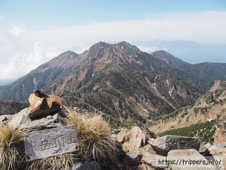 標高2,700mある中岳の山頂に到着しました。中岳と名付けられた山頂は日本には山ほど存在します。メインの山と山の間にある、サブの山の印象です。適当に付けられたような名前もちょっと寂しい。