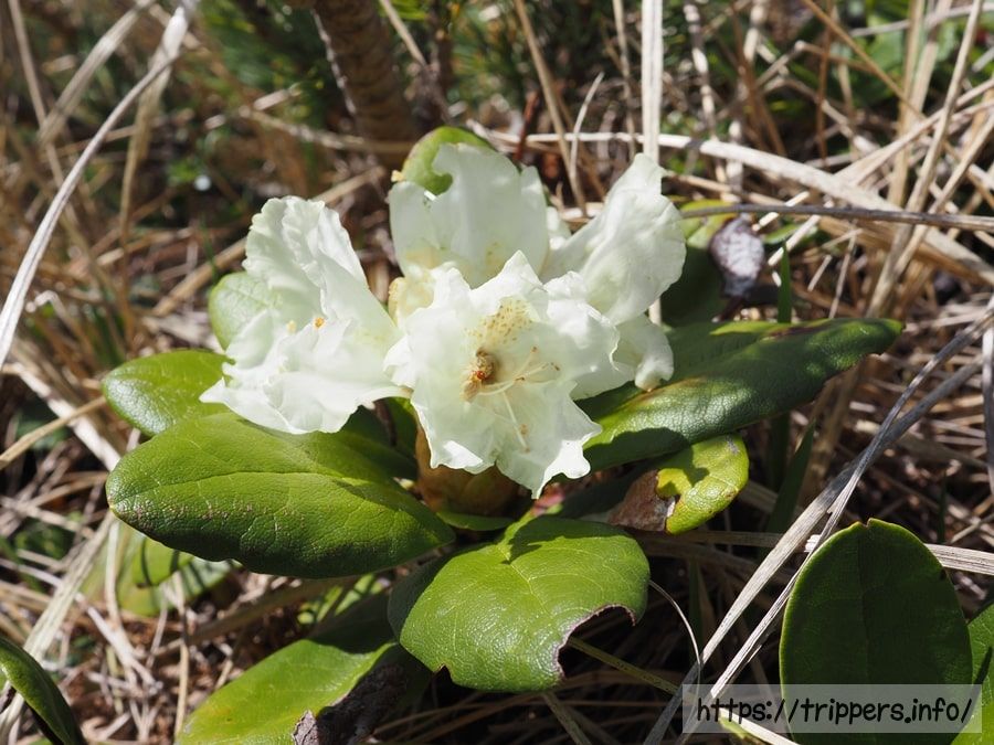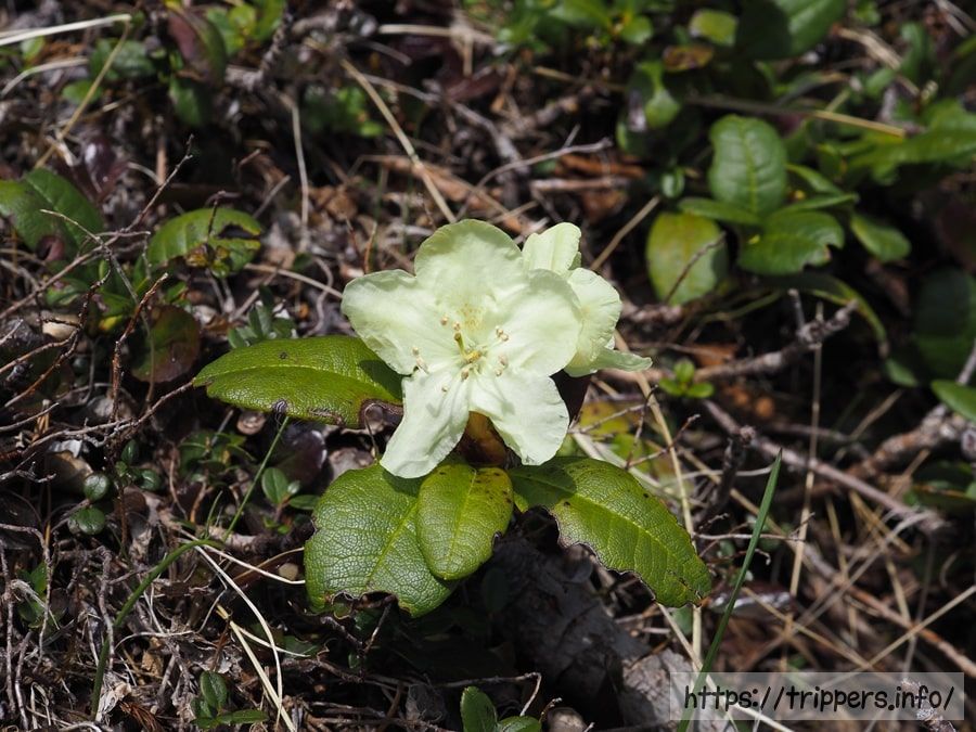 キバナシャクナゲの白花でしょうか。他の花はどれもクリームやレモン色なのに、この個体だけ真っ白でした。