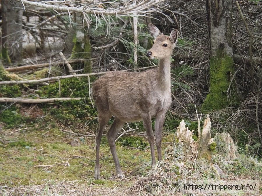 人通りの少ない北沢コースでは、鹿に遭遇しました。奈良の鹿でもないのに、同行者にお辞儀をしていました。エサをねだるわけでも、攻撃する様子もなく、お辞儀の理由が不明でした。